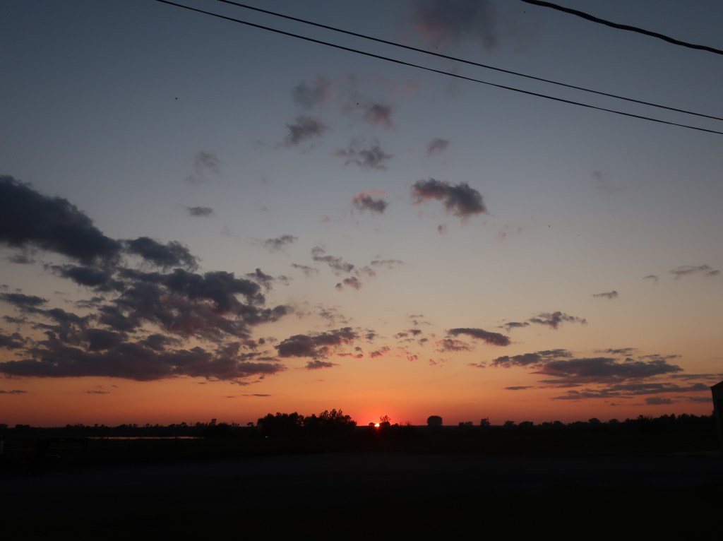 We spent most of the day in Iowa, a little in Missouri, and we are in Jacksonville Illinois tonight. As we head east, the sky seams to be shrinking and we’re losing daylight riding against the sun.