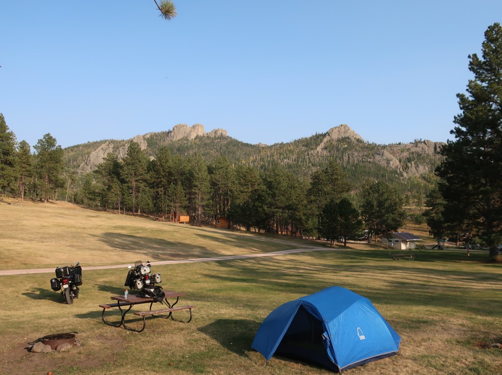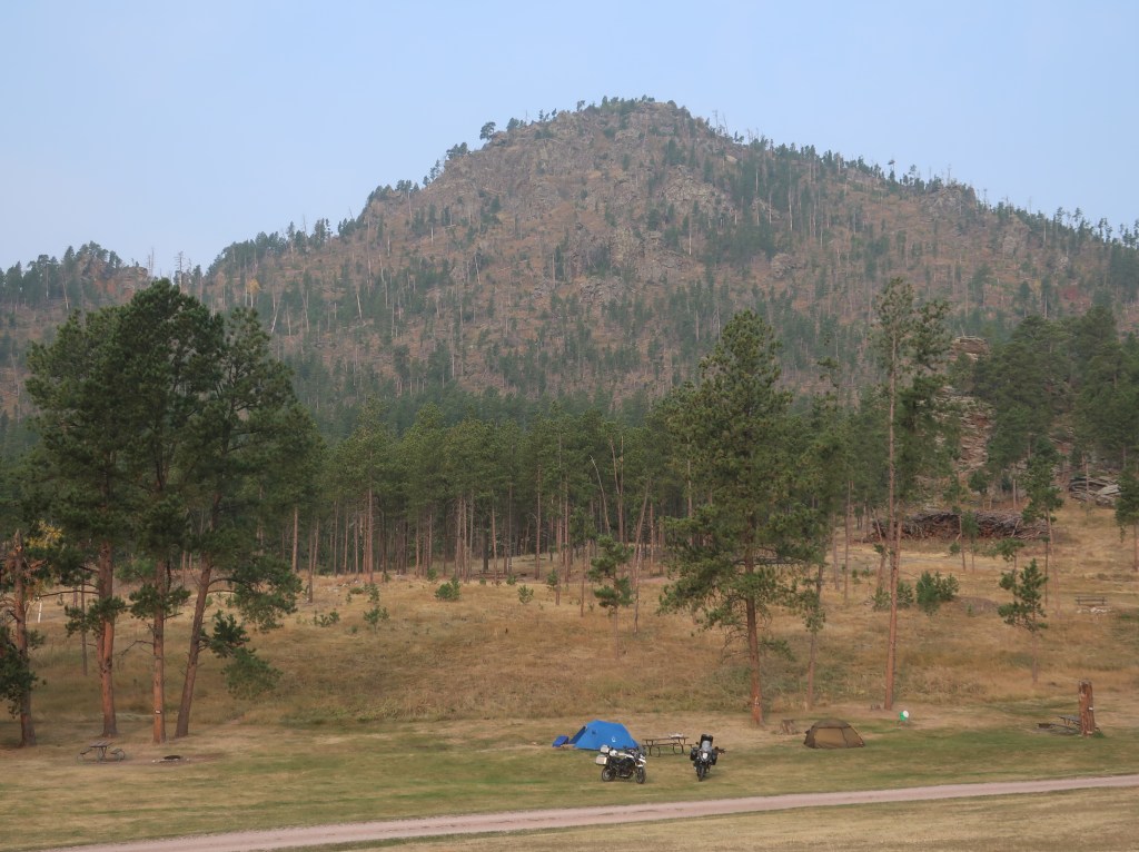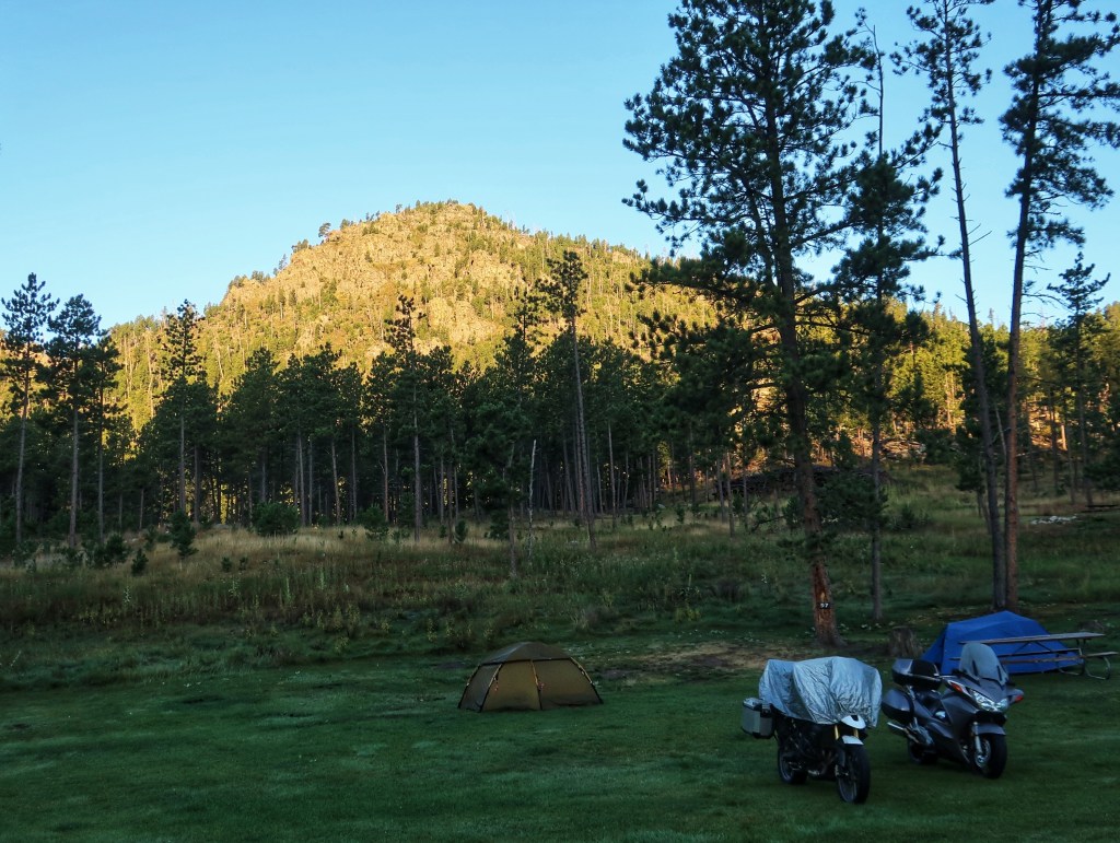 Made it back to camp early and enjoyed our final evening in the Black Hills. The Black Hills are not actually black. The name comes from the Lakota. Due to the thick growth of pine trees, the hills look very dark from a distance and in stark contrast to the surrounding landscape. Also, these are not really hills but mountains. Black Elk Peak has an elevation of 7,244 feet making it the highest point east of the Rockies.