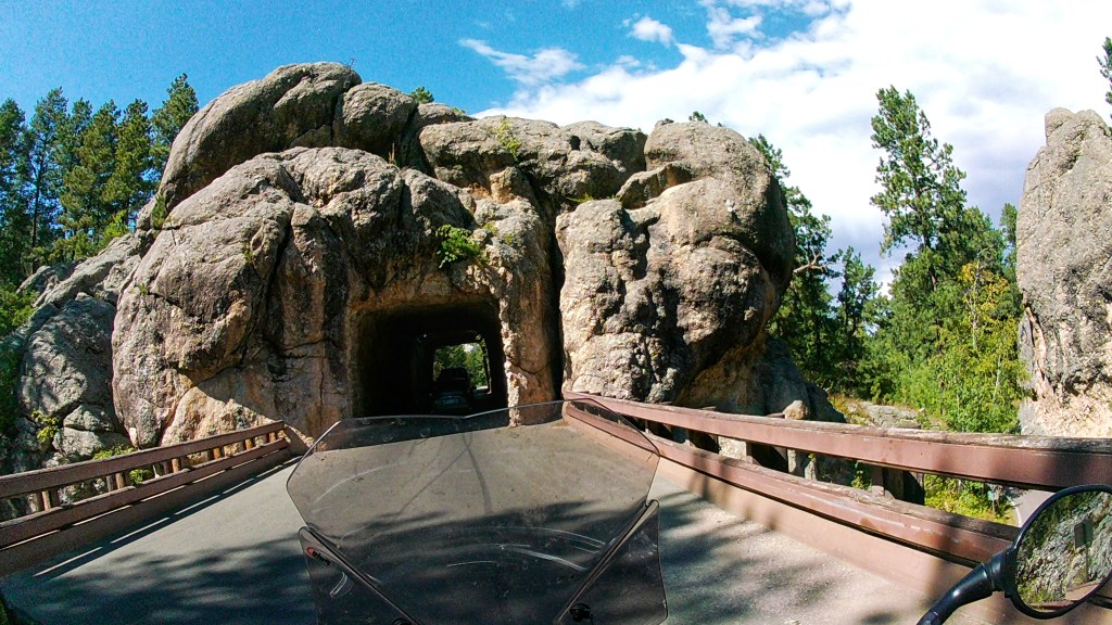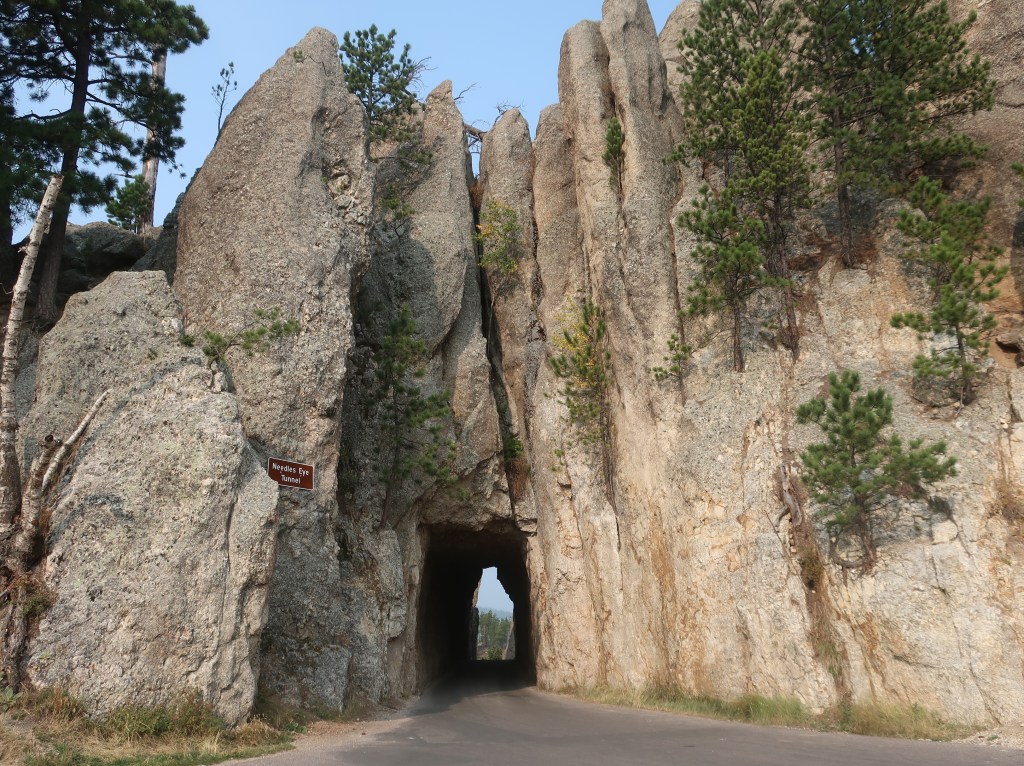 Went by Sylvan Lake and entered the park on the Needles Highway. The road snakes it’s way through the granite spires and rock formations covering this area. There are three tight one-lane tunnels to pass through thus “threading the eye of the needle”. I did break out the GoPro so I hope to be able to post some video later. The road is unbelievable!