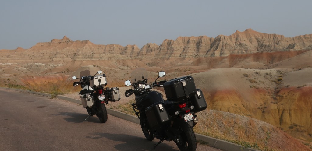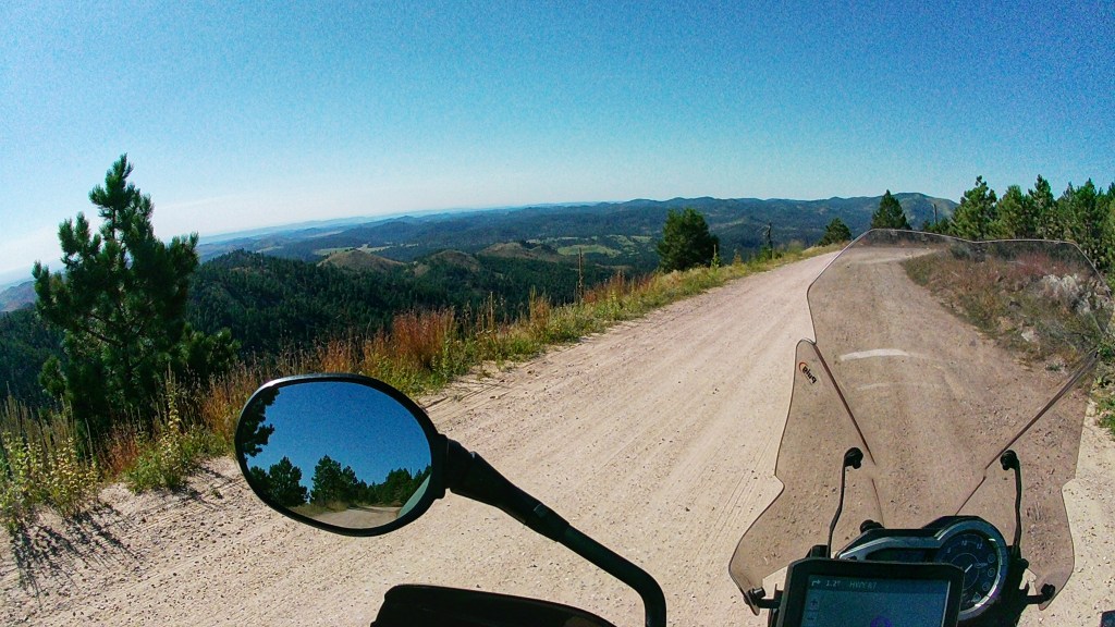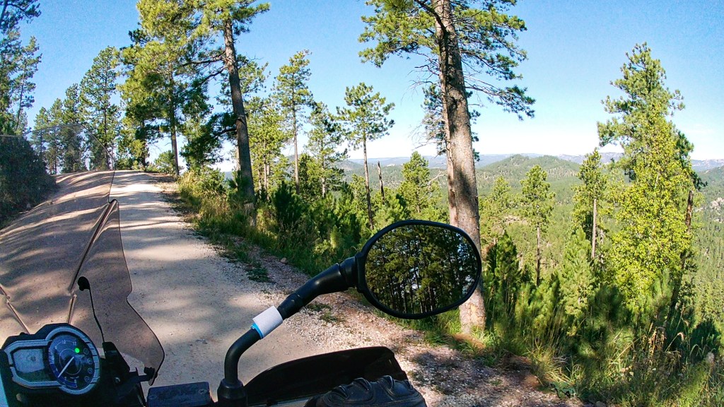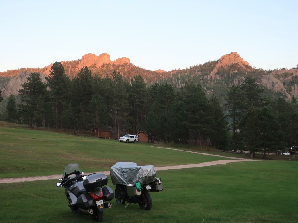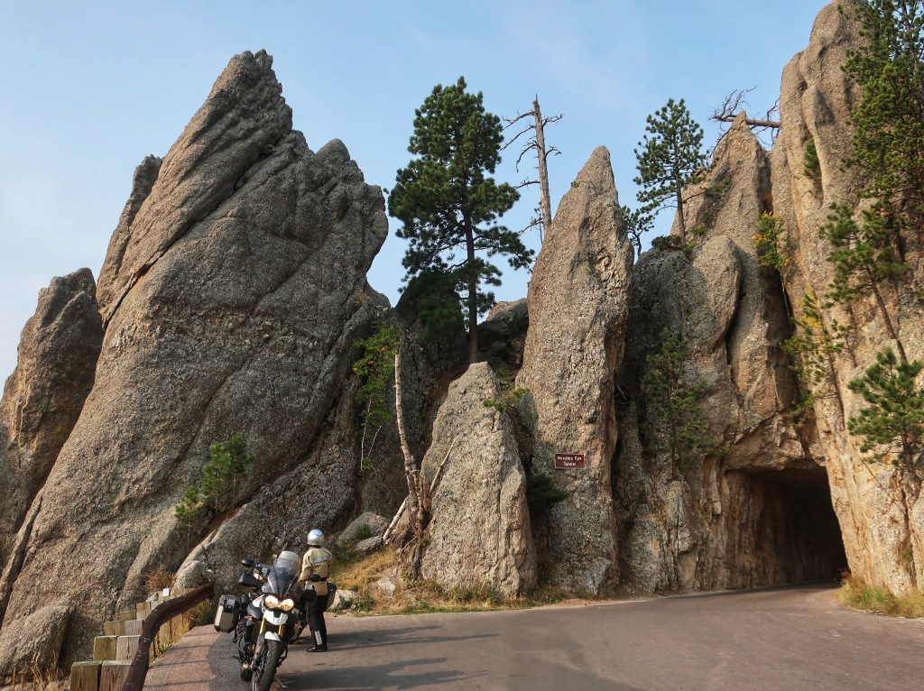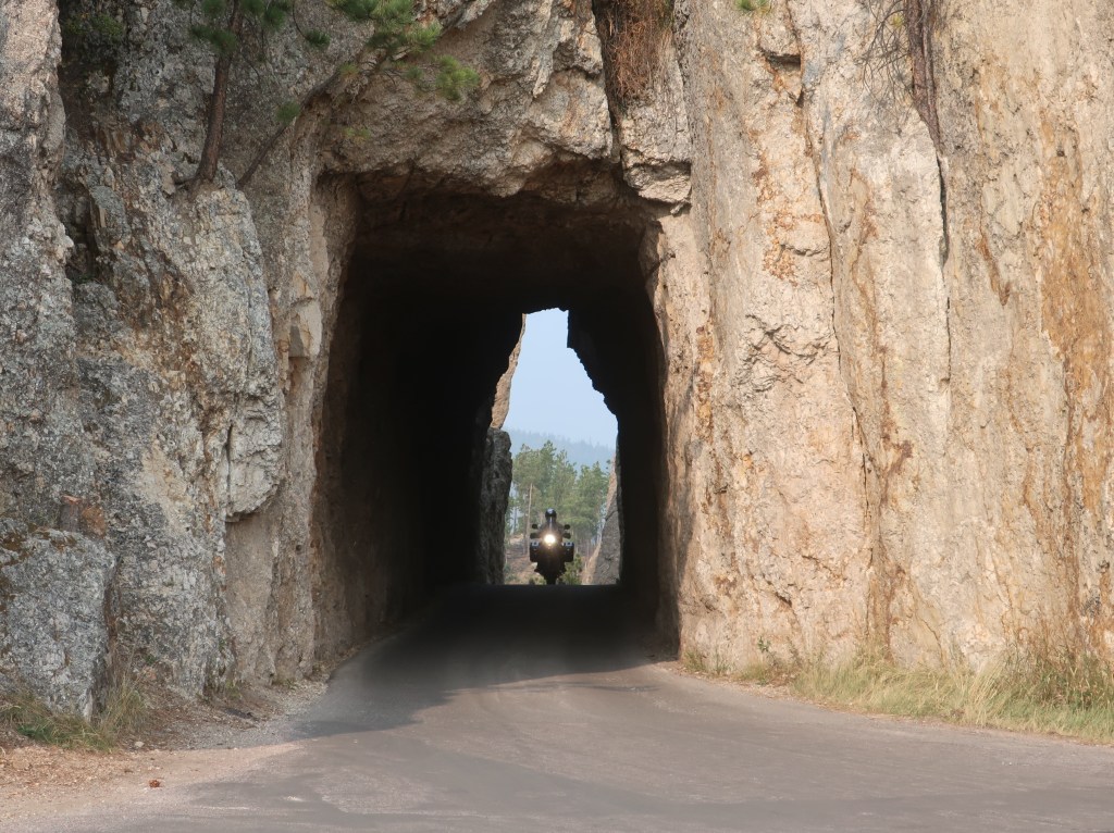 It’s been another great day and much more laid back. Probably covered less than 100 miles today, largely in Custer State Park. We got another early start and really appreciated heated gear and handgrips this morning. The smoke haze was noticably worse today and photography was limited, but traffic was lighter and the ride was fantastic.