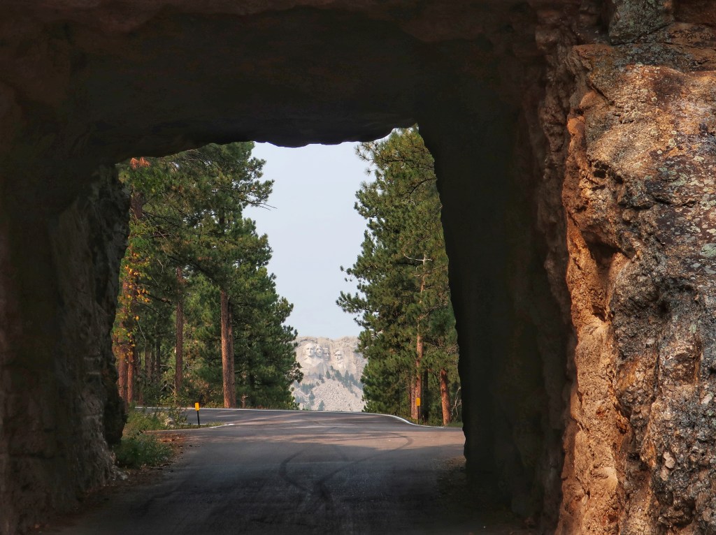 Iron Mountain Road framing Mount Rushmore.The backside doesn’t look at all like it appeared in Hitchcock’s North by Northwest.