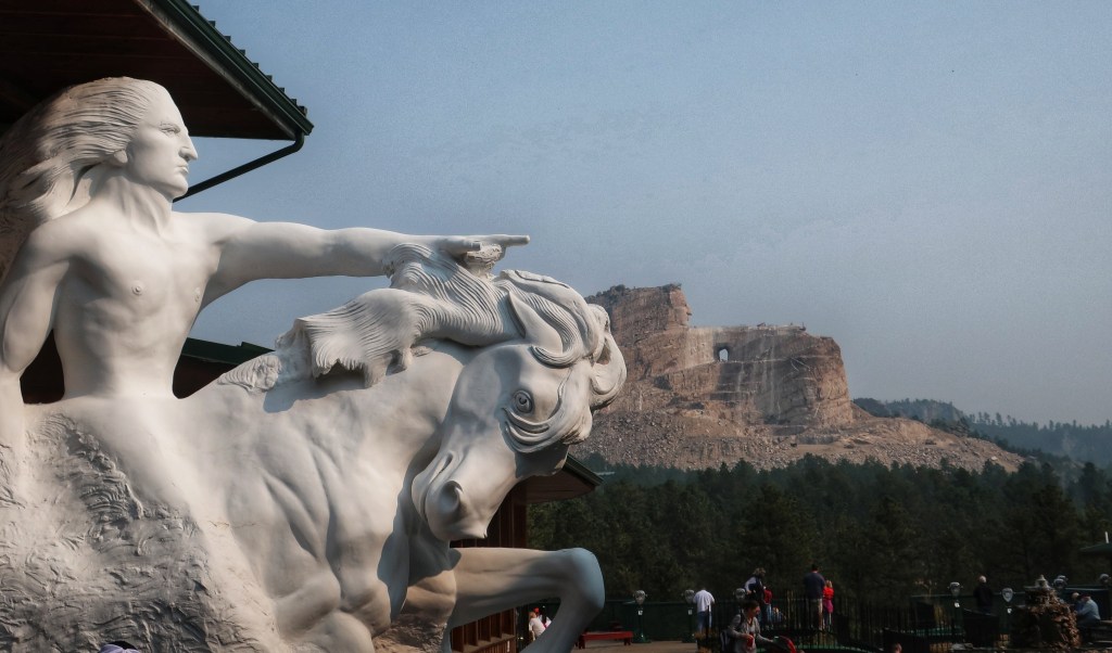 We did not actually visit Mount Rushmore this trip but it is visible from several vantage points. The night show is supposed to be fantastic and quite patriotic. The Crazy Horse Monument is spectacular in size. It’s not much money to go in and the museum has a fair collection of artifacts and art.