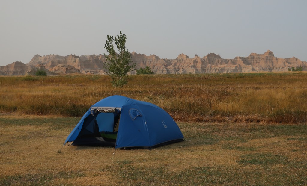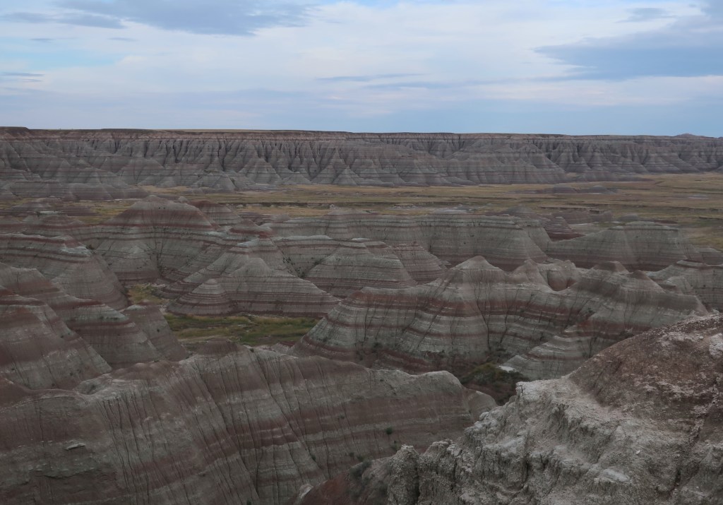 The Badlands are only a hundred miles from the Black Hills but the landscape changes dramatically and quickly. Pine and granite gives way to open rolling prarie with hardly any trees. And so far, I don’t know how to describe the Badlands. Otherworldly comes to mind. But we are here and camped for the next day or two.