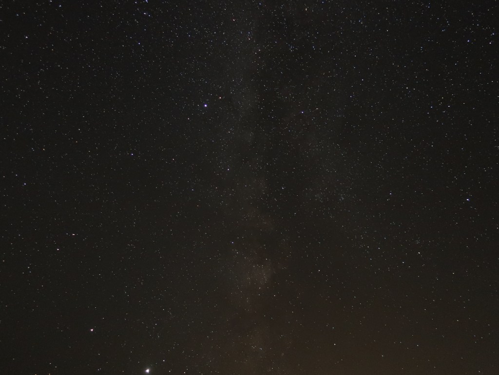 The Milky Way was very easy to spot. This is looking the same direction as my closing photo on Day 3’s blog post. The very bright object is Jupiter.And the same view but with star trails over a two hour period before the battery died. Again, the bright one is Jupiter.