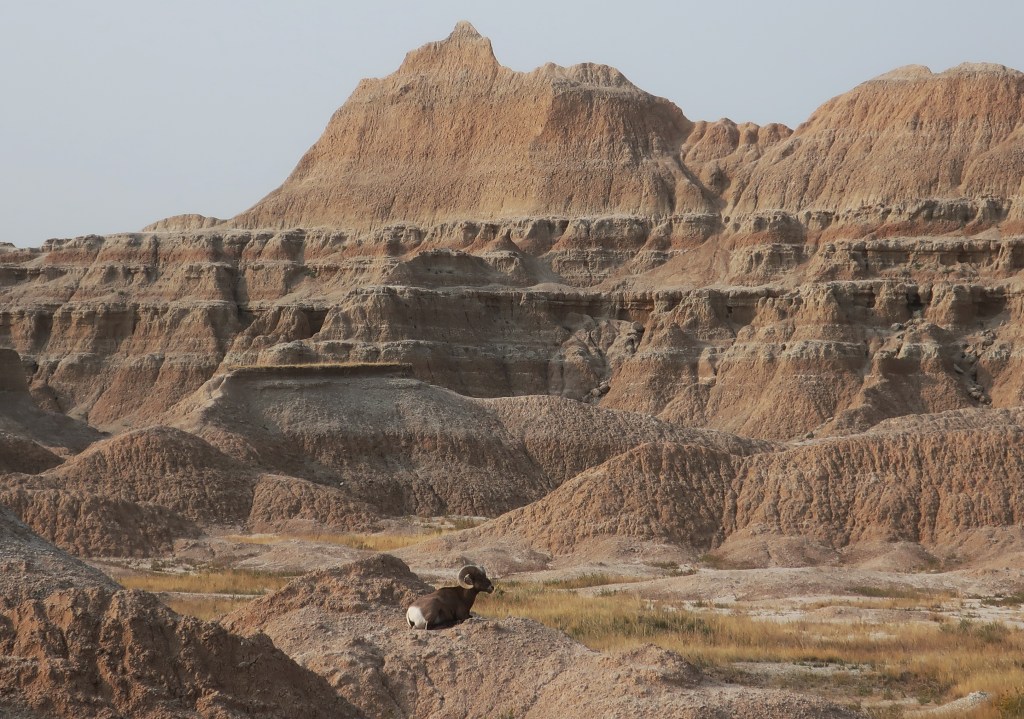 The bighorn may jump out in the picture but we almost walked by him without noticing. The Badlands are like no other place.