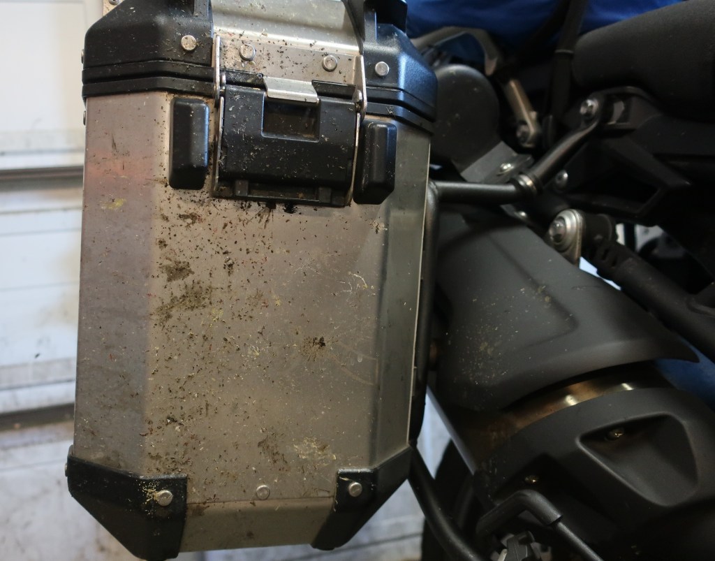 Front of right pannier. Lots of bugs of course, but both bikes had quite a splattering of cow or buffalo manure.