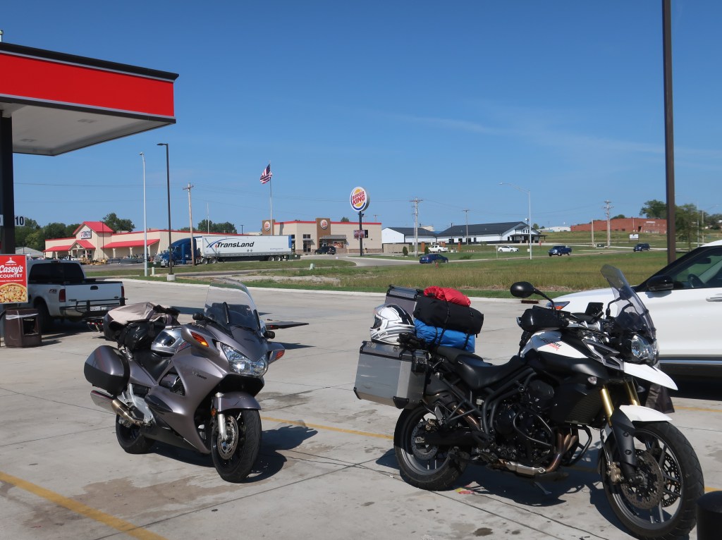 We cut across the lower side of South Dakota on the two-lanes. The vastness and emptiness of parts of the West is just mind boggling. If you live east of the Mississippi and have never traveled the western plains, It is truly hard to comprehend just how open this land is. And such few people or towns. After six hard hours of running almost due east at 70 mph, we are still in South Dakota tonight, although just barely. North Sioux City is in South Dakota. Sioux City proper is Iowa. And now I’ll try to get some sleep with that Tom Petty song still in my head.
