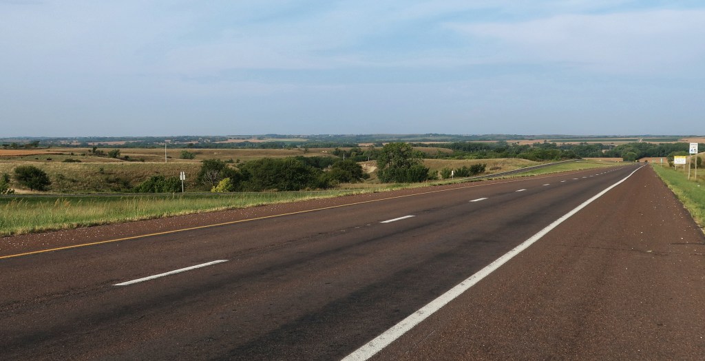 It’s hard to tell in the picture, but Eastern Kansas is open, rolling, and fairly pretty. 65 mph speed limits and almost no traffic.