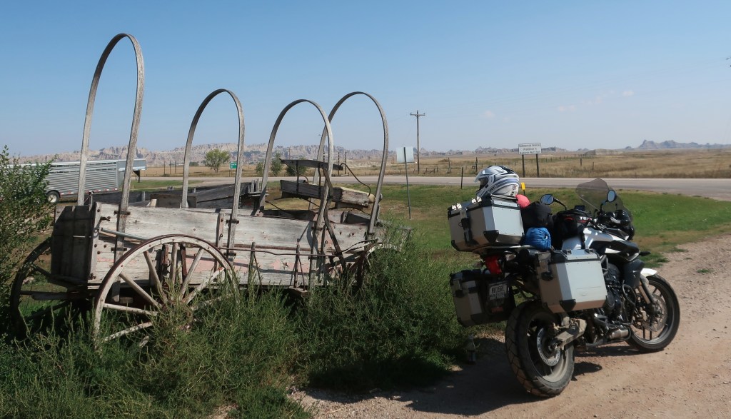 We awoke to clear skies today. Yeah! Spent a few hours in the Badlands before breaking camp and starting east. The Badlands are still one of my and Don’s favorite places. It is just so unworldly and unique. I didn’t charge my helmet cam since I wasn’t going to take many photos and I missed a couple of great shots. We idled through a small flock of bighorn sheep meandering in the road. I could have reached out and touched one. Then a half mile later were 3 beautiful big rams grazing the edge of the road. Extremely close and had a panoramic view of the Badlands behind them.